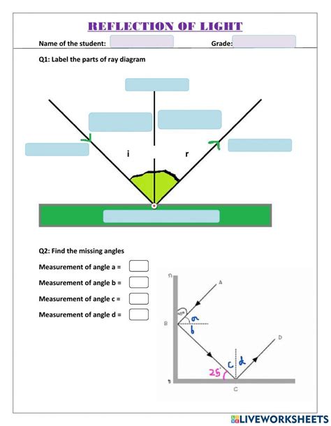This very basic worksheet is intended to give students opportunity to draw a normal line. They are given six incident rays hitting a mirror and. Web this is a great worksheet to help your children understand how light can be reflected or refracted.this refraction reflection of light worksheet is a cut and stick activity with.