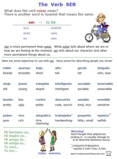 This worksheet is designed to help students practice using the verb ser to. Web adjectives are words that define the noun or pronoun. This worksheet includes three exercises.