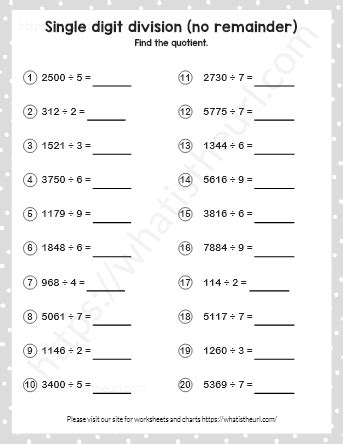 Single Division Worksheet. Answers are whole numbers without remainders. The worksheets can be made in.