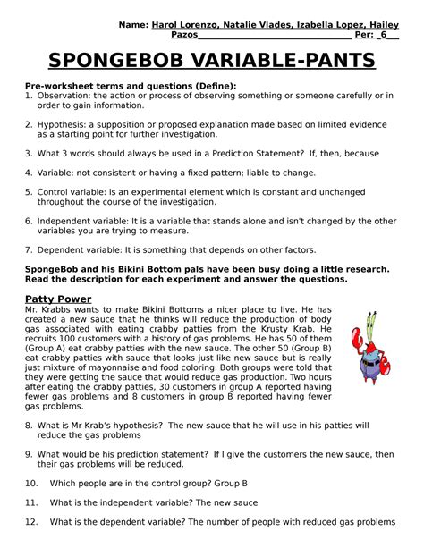 Worksheets are scientific method name controls and variables part 1, bikini bottom genetics name, spongebob. Worksheets are hs sponge bob safety, scientific method name science safety. Web 5th grade science spongebob themed staar jam review.